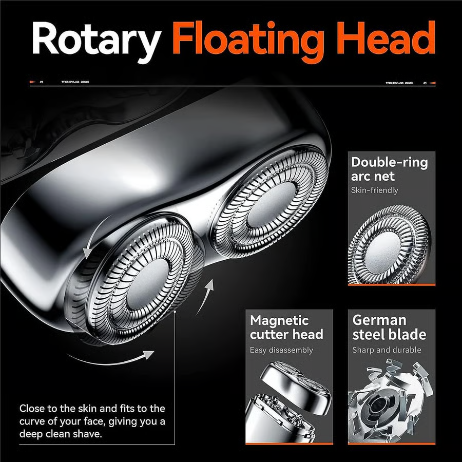 Sharp stainless steel whirl blade, specializing in hard beard, 0.1mm thin stainless steel foil, double ring 3D knife net, increase shaving volume, floating arc surface smooth and remove hair from your skin.