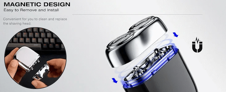 The electric shaver is made of all-alloy with gently rounded contours which gives the shaver a sleek appearance. The smooth shape brings a good feel. The electric shaver for men shaving head with magnetic design, easy to disassemble and flexible installation, easy for you to clean and replace the head.