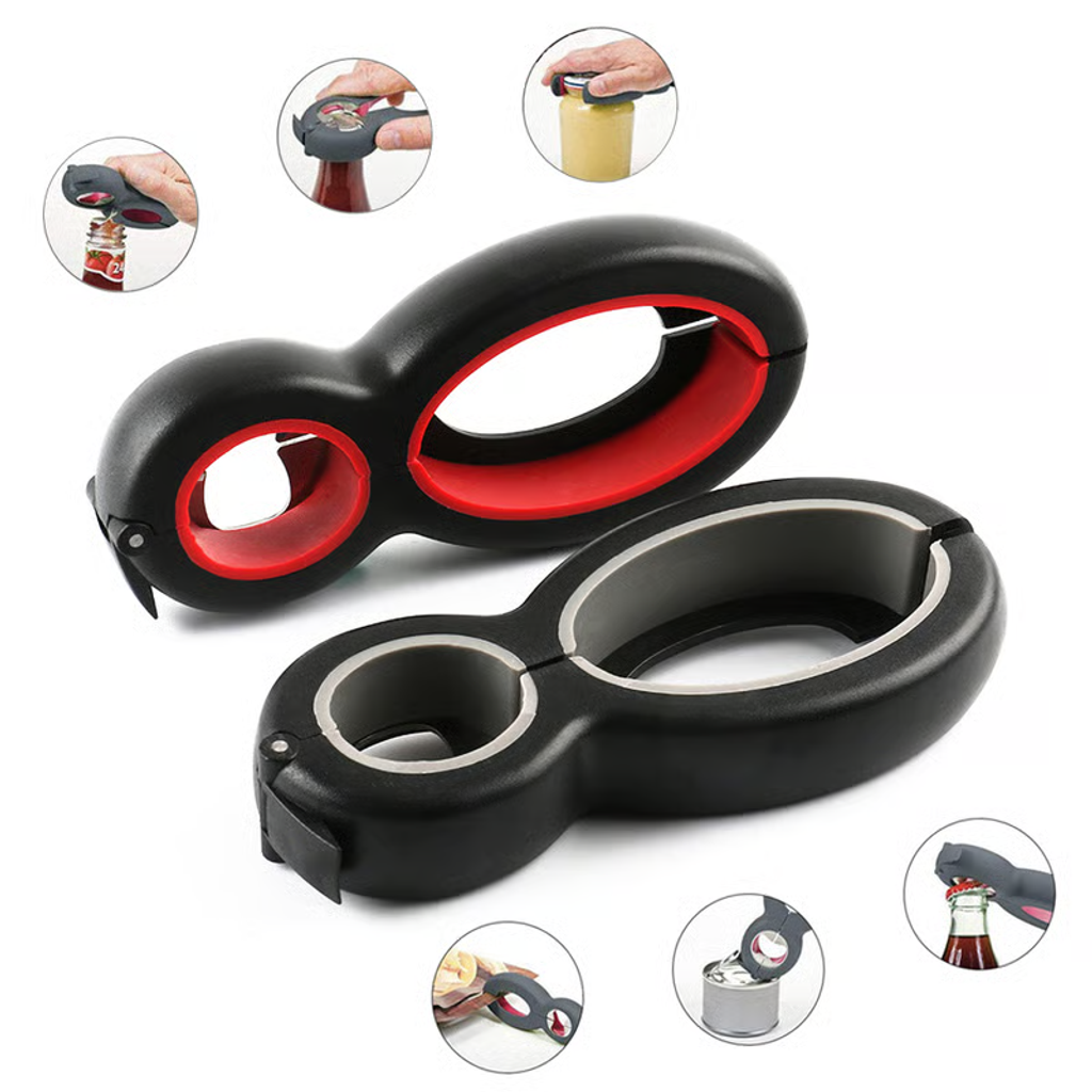 - All in one - save space! no need to bring 6 different tools with 6 different functions! this opener does it all!