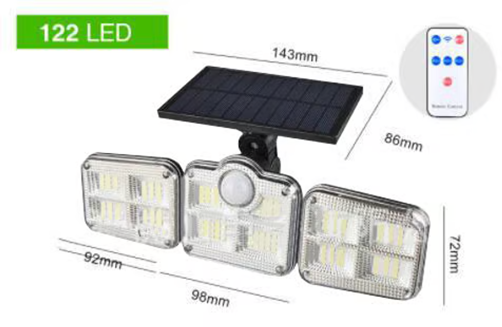 This outdoor solar wall light has 3 heads with 122/138 LEDS that can be rotated 360° to provide good light coverage and you can easily point the heads in the direction you want.